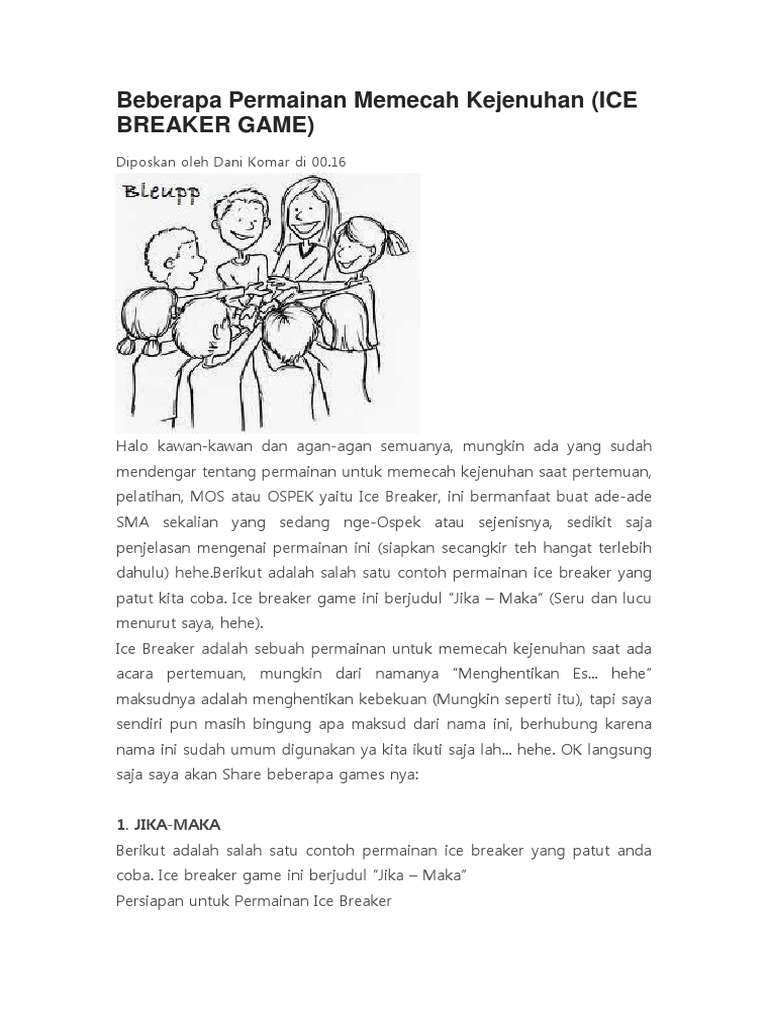 Game Ice Breaking Lucu Ice breaker secara bahasa terdiri dari kata ice yang berarti es dan breaking yang berarti memecah. Satu siswa dalam setiapa kelompok bertugas bertanya lewat. 5 Contoh Permainan Ice Breaking Indoor Varashcareer Guru menjelaskan aturan permainan.